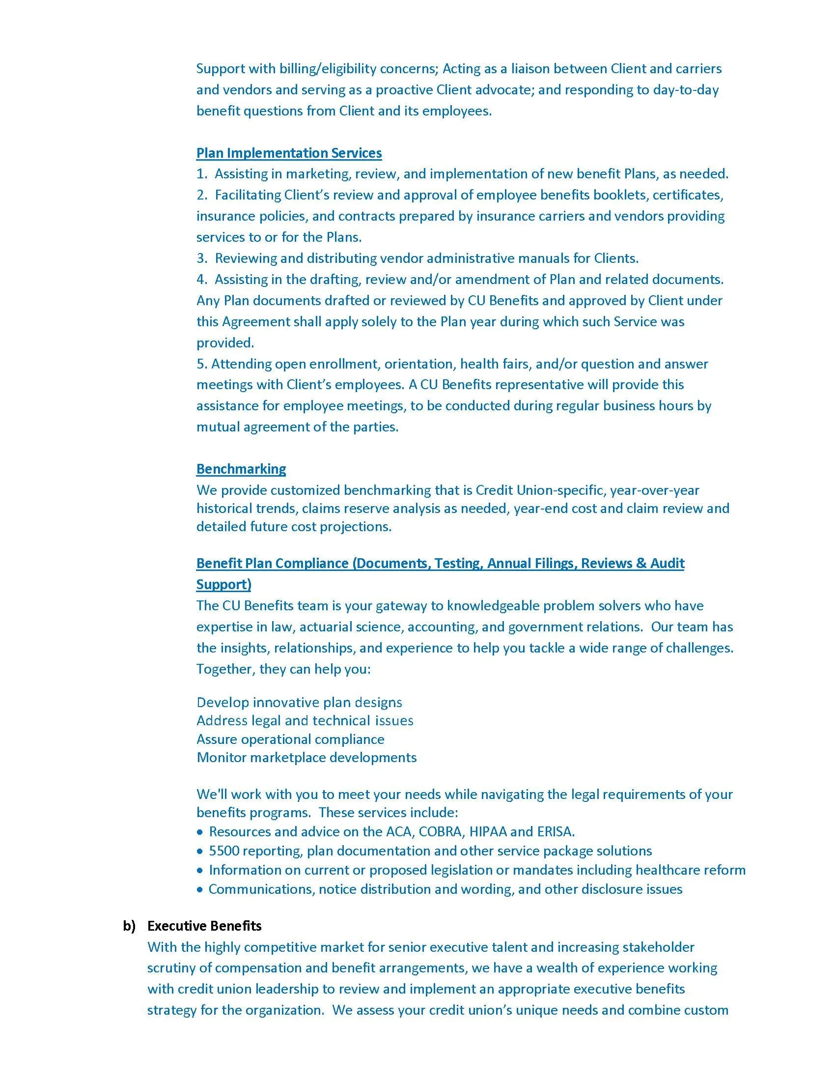 The redesigned proposal immediately elevated CU Benefits Alliance’s executive presence. What had previously been a functional Word-based submission became a strategically engineered document built in Adobe InDesign—allowing for far greater control over hierarchy, typography, data visualization, and layout precision. The shift in platform was not cosmetic; it enabled a level of refinement and structural discipline that Word simply cannot support at an executive level.